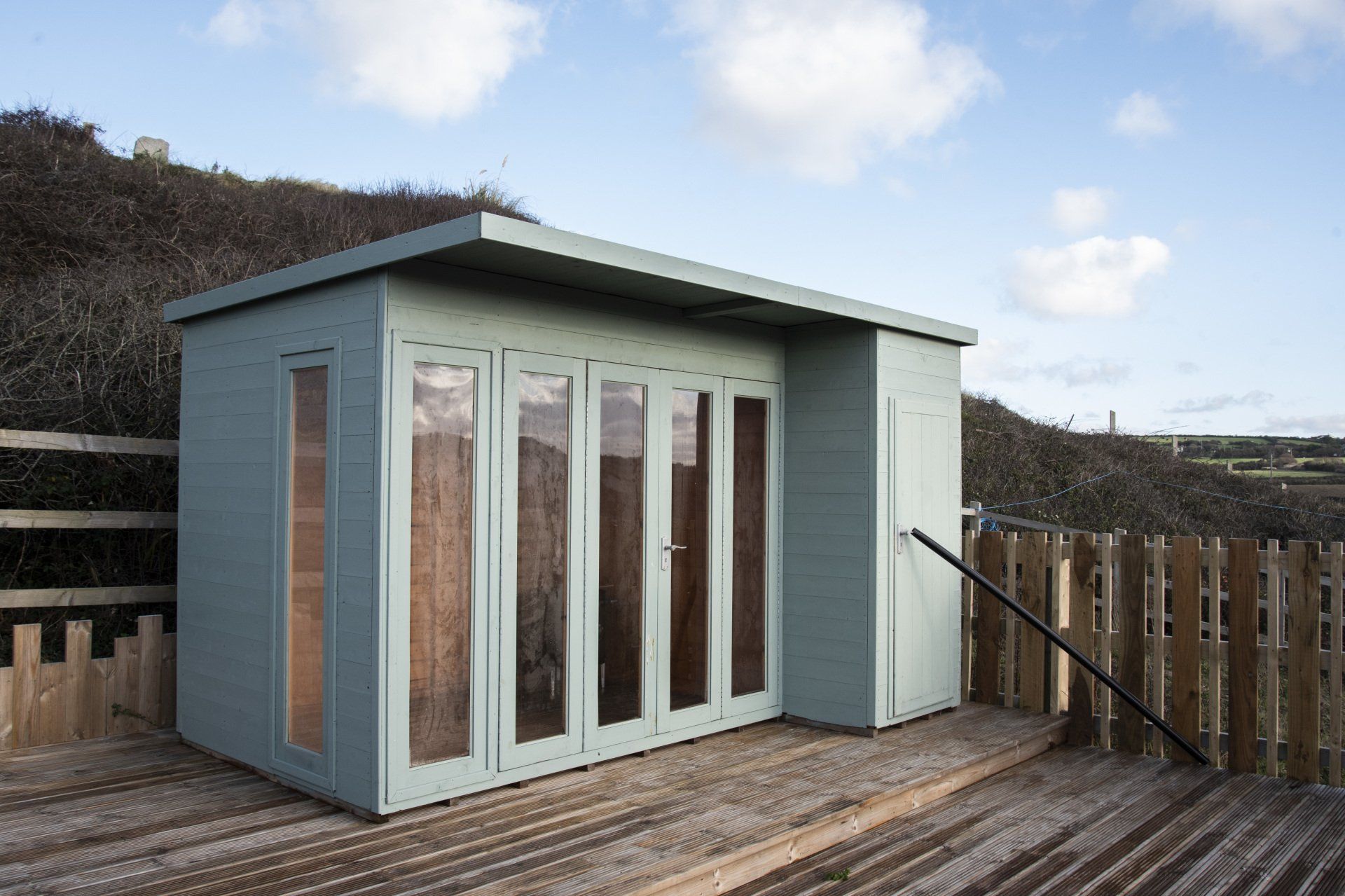 There is a small garden to the front of the house with a picnic bench. This space is great for kids to play or to sit and relax in the sun. Towards the back of the house, accessed via the drive way there is a shared staircase and then a private upper garden to the left. You will find a summer house and decking at the top where there are even more incredible views!
